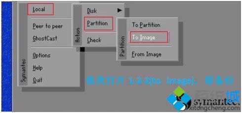 3、選在彈出的界面中選擇“手動執行Ghost“選項; 4、進入如下Ghost程序界面:依次選擇“Local(本地)→Partition(分區)→To Image(生成映像文件)”項;
