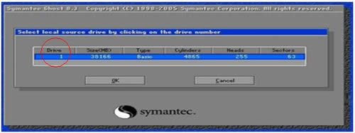 6、選擇要備份的分區(即源分區),選擇分區“1”(即C分區),再按Tab鍵切換到“OK“按鈕,再按回車;