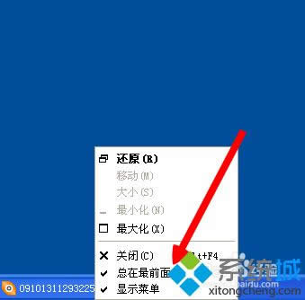 4、我們?cè)谌蝿?wù)欄里面找到這個(gè)圖片,然后我們右鍵,點(diǎn)擊設(shè)置為總是顯示最前面;