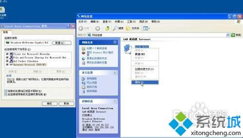 2、進(jìn)入網(wǎng)絡(luò)鏈接!這里可以看到計(jì)算機(jī)上面的所有鏈接; 在本地鏈接圖標(biāo)上右鍵屬性打開(kāi)本地鏈接屬性!